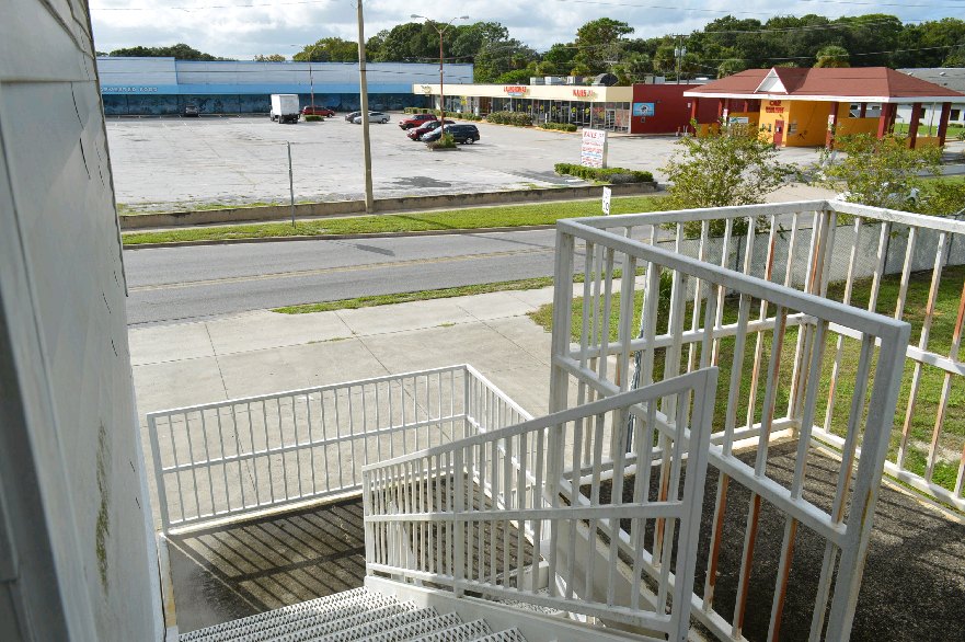 from across the street looking east